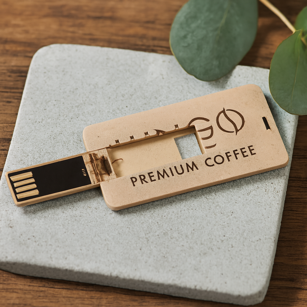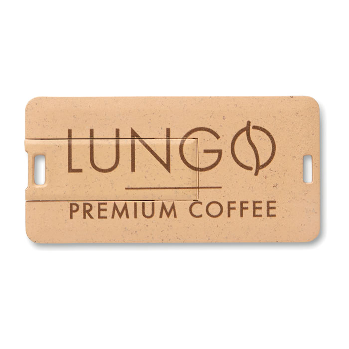 Small size flat USB memory stick in 60% Straw/40% PP casing. The flat surface of the product allows a full colour printing of your logo and pictures. The price includes printing in 2 colours on 1 side and door to door delivery. Delivery time: from 11 working days. Printing options: silkscreen and full colour. Our USB prices do not include the € 0.60 home copy duty. Applicable for all USB deliveries in the Netherlands from 01-01-2018.