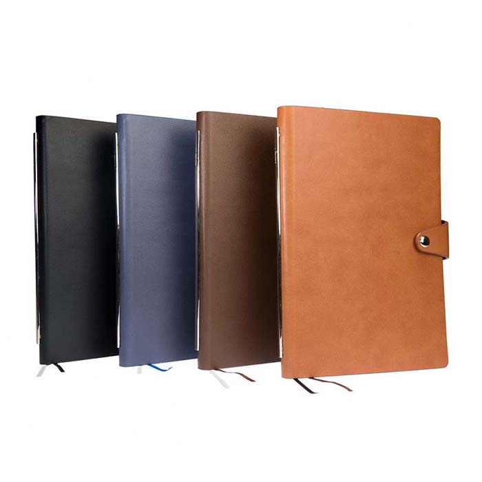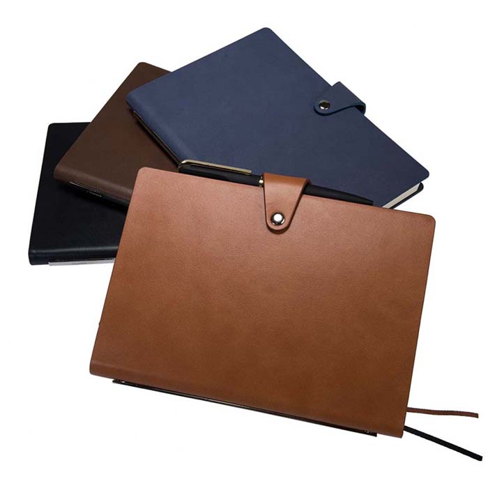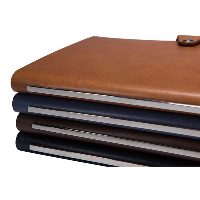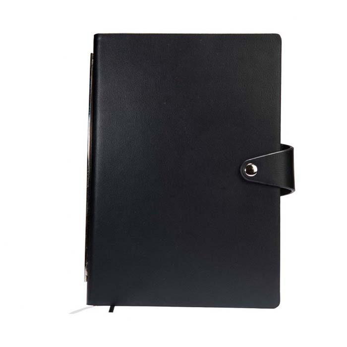VIP finish A5 notebook with hard PU cover that can be beautifully engraved. Stylish metalic trim on the spine. Comes with a button closure. Premium grade ruled pages.