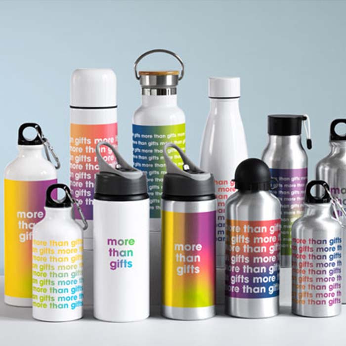 Water bottle, notebook and pen gift set.