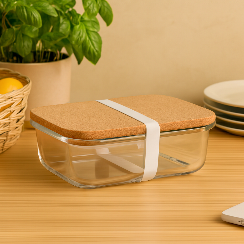 Introducing our high borosilicate glass lunch box, designed with eco-consciousness in mind. With a generous capacity of 830 ml, this lunch box features a sustainable cork lid and a secure silicone band. The durable borosilicate glass ensures long-lasting use, making it a perfect choice for those committed to reducing their environmental impact. Ideal for everyday meals, this stylish and practical lunch box is an excellent way to support a greener lifestyle.