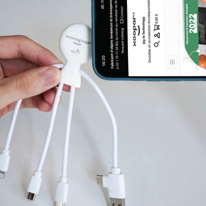 Unlock the future of effortless digital information sharing with Wielo, simplifying data transfer through NFC technology while championing sustainability. It is crafted from 60% recycled ABS, 8% recycled RPET, and 23% TPE recycled materials. This eco-friendly multi-charging cable not only reduces environmental impact but also combines NFC functionality, enabling seamless digital information transfer, from business cards to websites. With versatile input option of Type-C & USB-A while output options, including Lightning, Type-C, and Micro-USB, it’s the ultimate eco-conscious solution for your diverse charging needs.